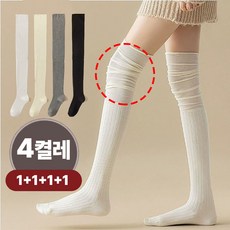 올라운드 니삭스 여성용 데일리 골지 셔링 롱 오버 양말 4종 세트