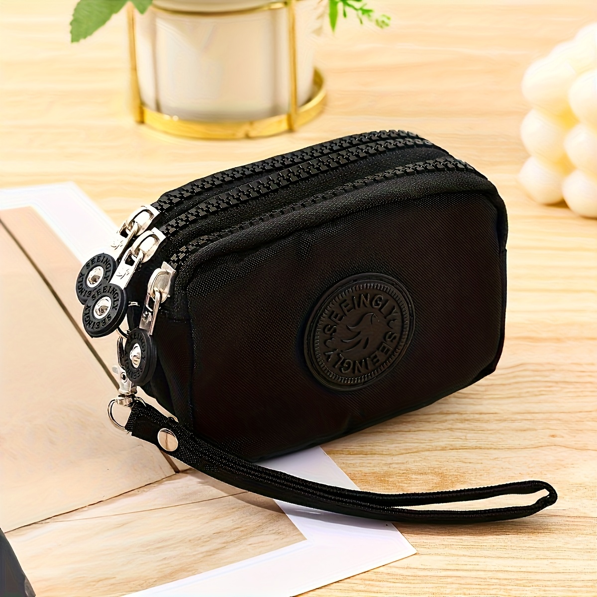 TEMU 우아한 레트로 스타일 동전 지갑 - 3개의 지퍼 디자인, 대용량, 카드 홀더 및 작은 동전 파우치 포함, 여성용 크리스마스 선물에 완벽, 키체인 휴대용 보관 가방, 가정 및 사무실 사용에 이상적