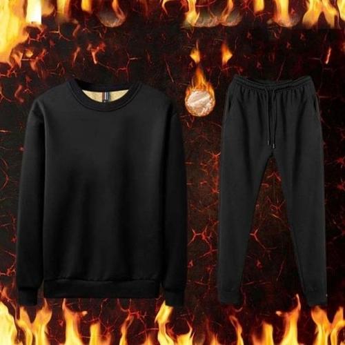 TEMU 플러스 벨벳 따뜻한 긴팔 | 캐주얼 스포츠 가을/겨울 상의, 스키니 핏, 크루넥, 단색, 레귤러 슬리브, 풀오버 스타일, 남성용