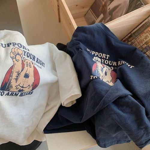 [에이치플러스몰]곰돌이반팔티 빈티지 루즈핏티셔츠 프린팅 반팔티