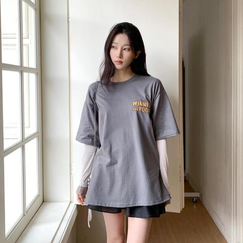 [옷자락] 여자 편안한 캐주얼 허니푸우 오버핏 티셔츠