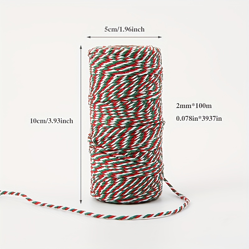 TEMU 100미터 3색 꼬임 크리스마스 리본 롤 - 레드, 화이트, 그린, 선물 포장, 공예, 장식 리본, 병 책갈피용 - 내구성 좋은 장식 리본, 크리스마스 트리 리본, 공예 재료, 로프 아트