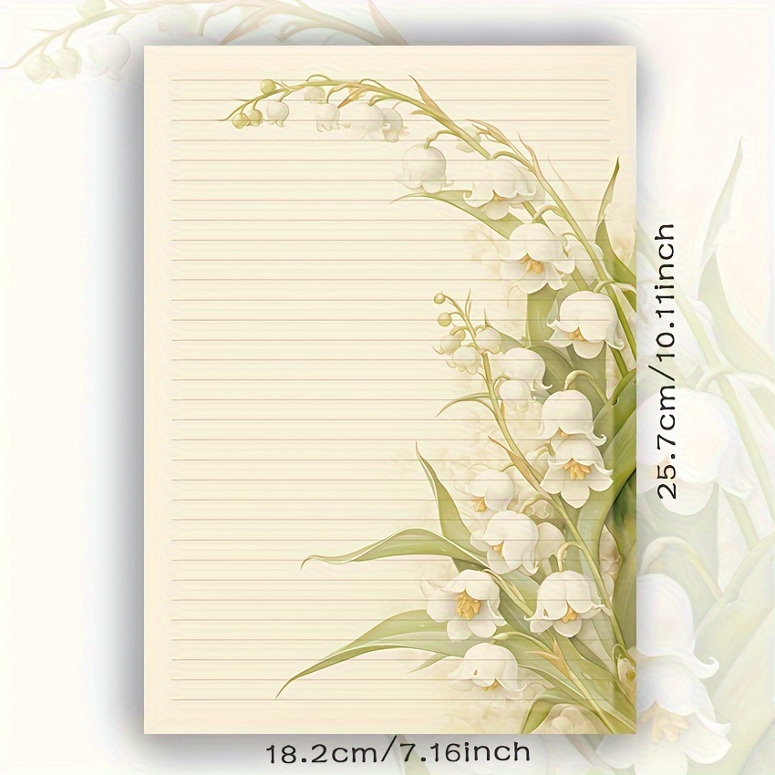 TEMU B5 라일리 오브 밸리 라인 노트북, 1/25/50장, 화이트 플로랄 그리드 페이퍼, 개인화된 심플 스타일, 신선한 미학, 편지 쓰기, 일기 쓰기 및 사무실 사용을 위한 고가 문구, 단면, 떼어내는, 접착성이 없는, 학생과 전문가에게 이상적입니다.