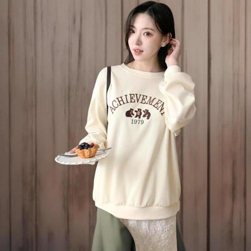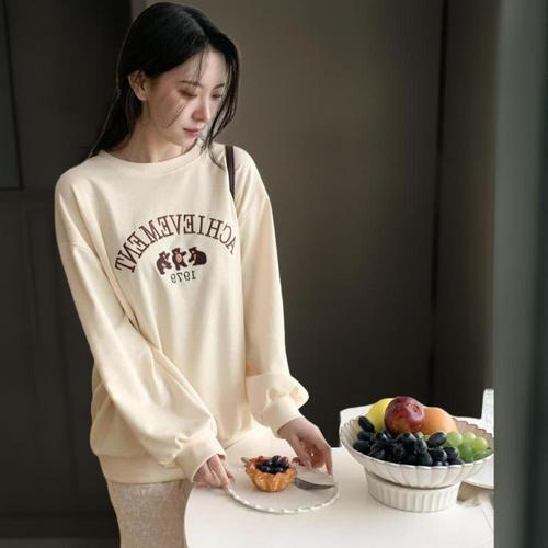 |KMT9FB3|여성용 루즈핏 긴팔 맨투맨 곰세마리 자수 라운드넥 티셔츠