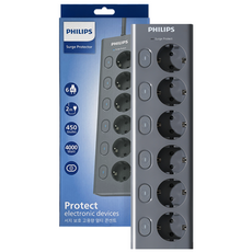 필립스 고용량멀티탭 4000W 워크탭 과부하차단, 1.5m, 올그레이 6구, 1개, 올그레이 6구 CHP2164G