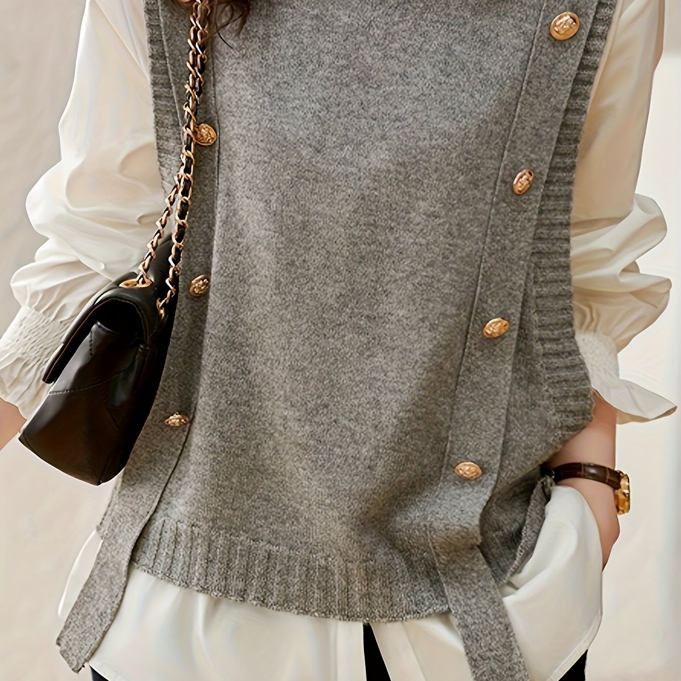 TEMU 우아한 여성 패션 풀오버 조끼 | 단색, 일반 칼라, 올 시즌