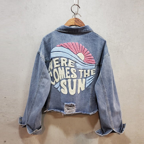미즈큐즈 / 썬 뽀글이 엠보 백포인트 빈티지 구제 워싱 세미 크롭