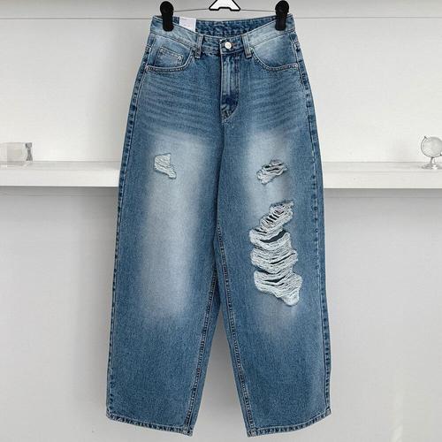 [옷자락]여성 구제 디스트로이드 와이드핏 연청 청바이