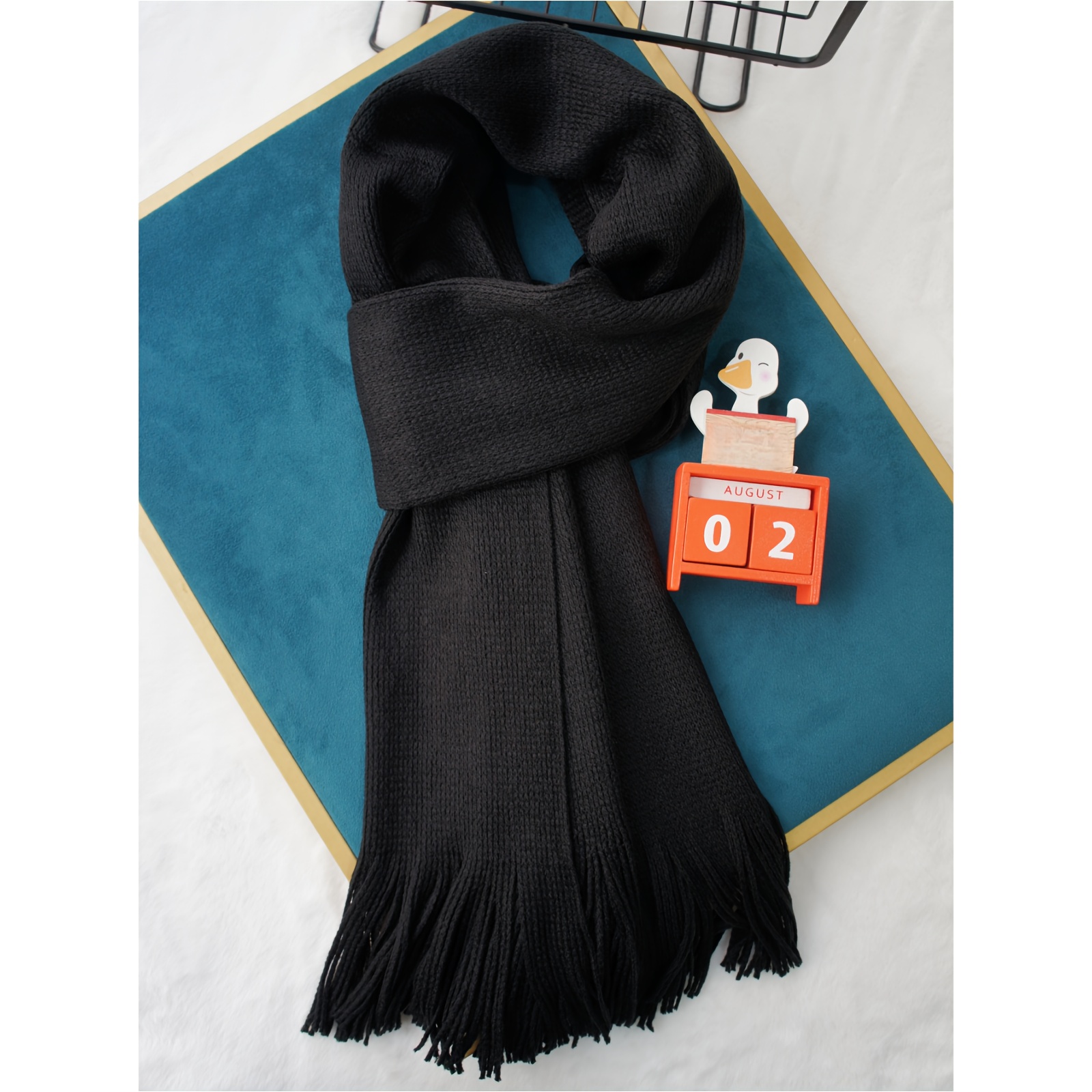 TEMU 우아한 여성용 스카프 - 부드럽고 따뜻한 겨울 액세서리, 고급스러운 단색 비탄력 디자인으로 다양한 스타일링 가능, 손세탁/드라이클리닝 (블랙 & 화이트), 겨울용 스카프