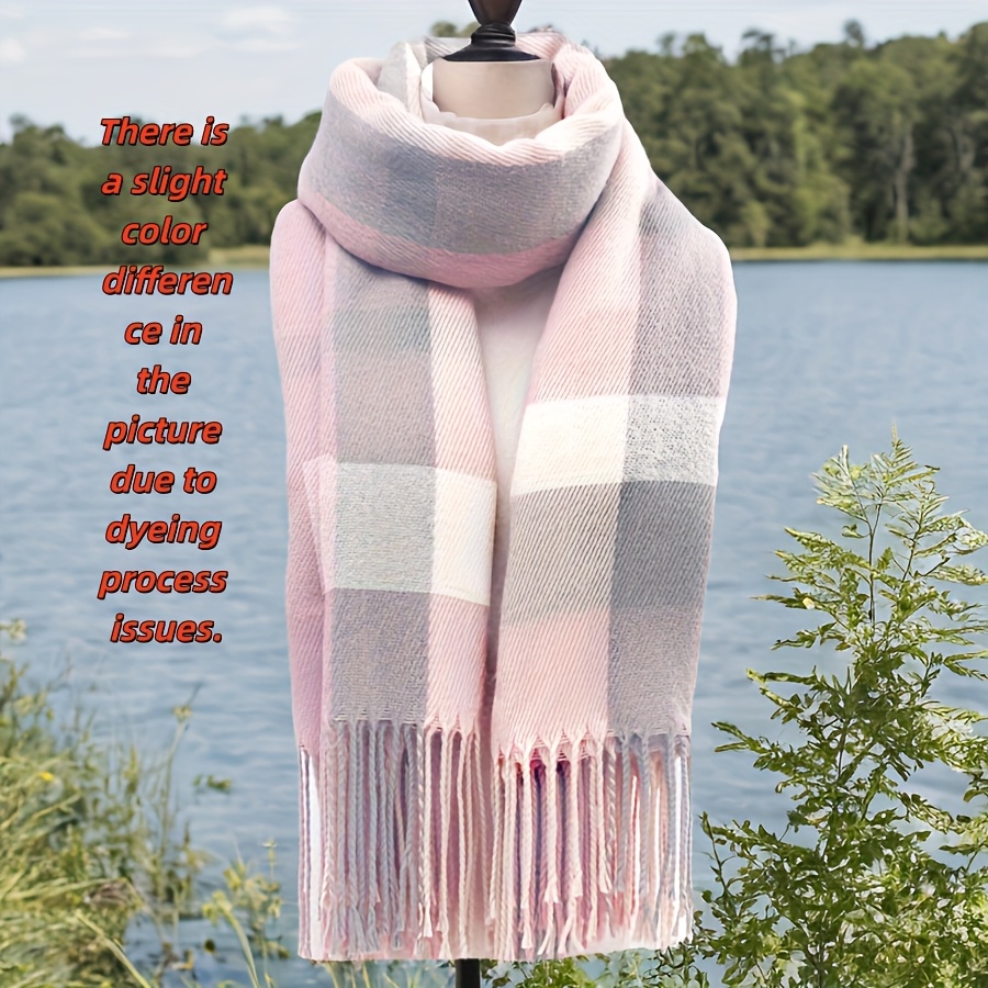 TEMU 새로운 가을/겨울 컬렉션 따뜻한 톤 프린지 오버사이즈 스카프, 다용도 및 두꺼운 디자인, 대비되는 체크무늬 패턴, 따뜻하게 입기 좋음