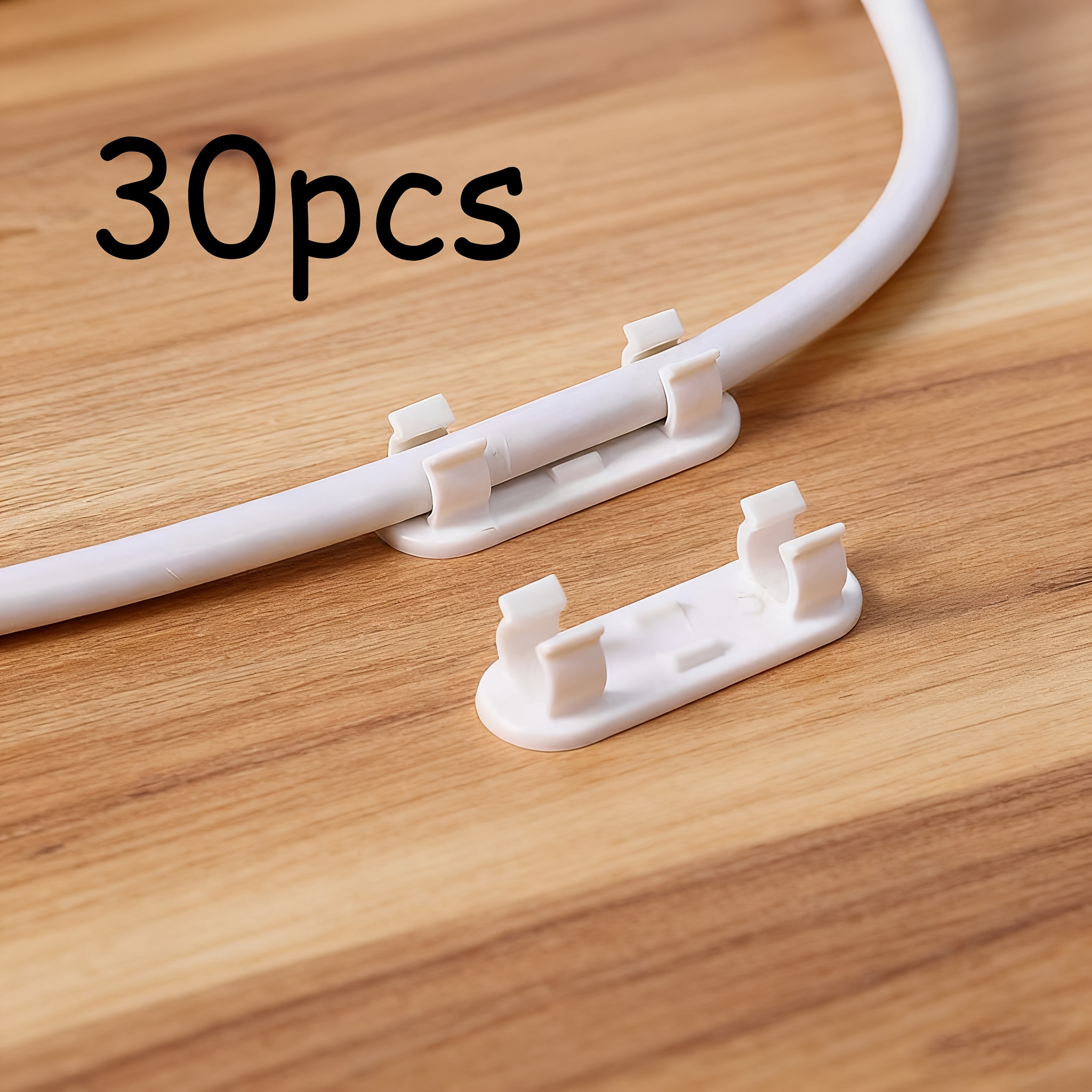 TEMU 화이트 사이즈 조절식 케이블 클립 30개, 드릴링 없이 접착식 설치, 자국 없는 탈부착, TV/컴퓨터/네트워크 케이블 정리용, 가정용 사무실용 벽 및 책상 밑에 적합, 내구성 있는 플라스틱 소재, 전기 DIY용으로도 적합