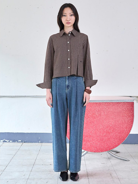 [구호플러스] Check Side Pleat Crop ShirtsBrown (KE5860M01D)
