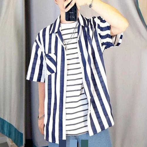 남자반팔셔츠 스트라이프 오버핏반팔셔츠 굵은 스 WFL6UHX