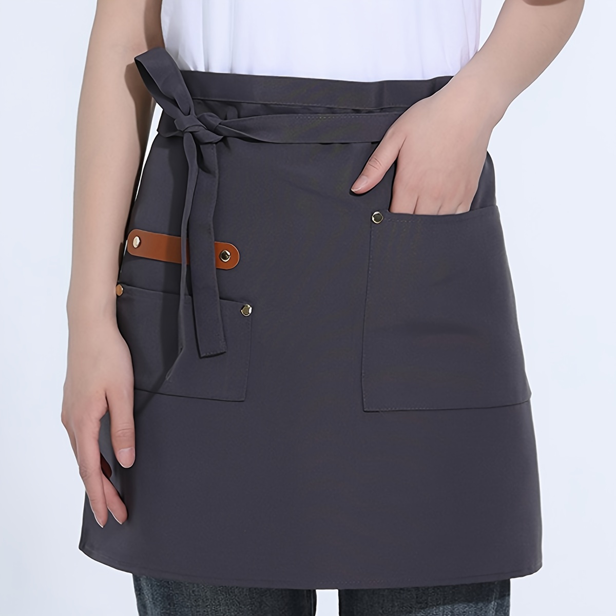 TEMU 1개 주방 캔버스 앞치마, 여성용 레스토랑 웨이트리스 앞치마, 확장 허리밴드 강화 솔기, 하프 앞치마