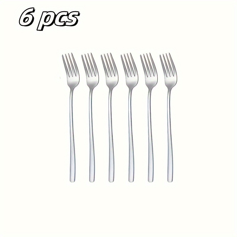 TEMU 6개 스테인리스 스틸 한국식 식기 포크 세트, 미러 폴리싱, 식기세척기 사용 가능, 가정 및 레스토랑 사용에 적합.