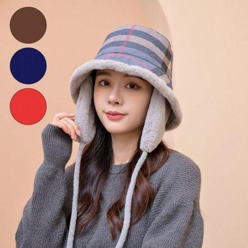 겨울모자 체크 귀달이 벙거지 버킷햇 탈부착 겨울 털모자 귀마개 WFKZIIX