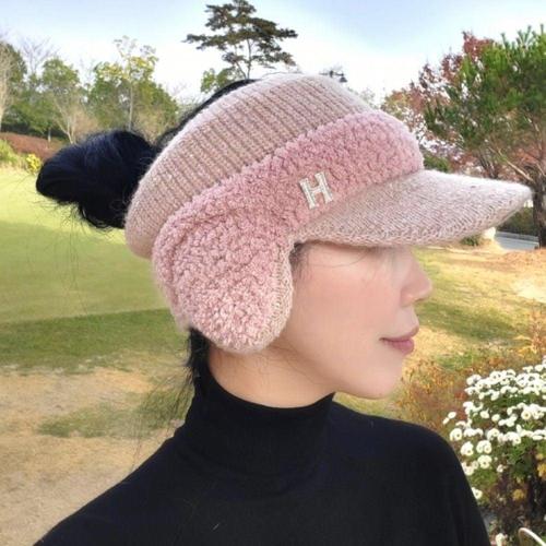 고운골프 겨울 니트 폼폼 귀마개 모자