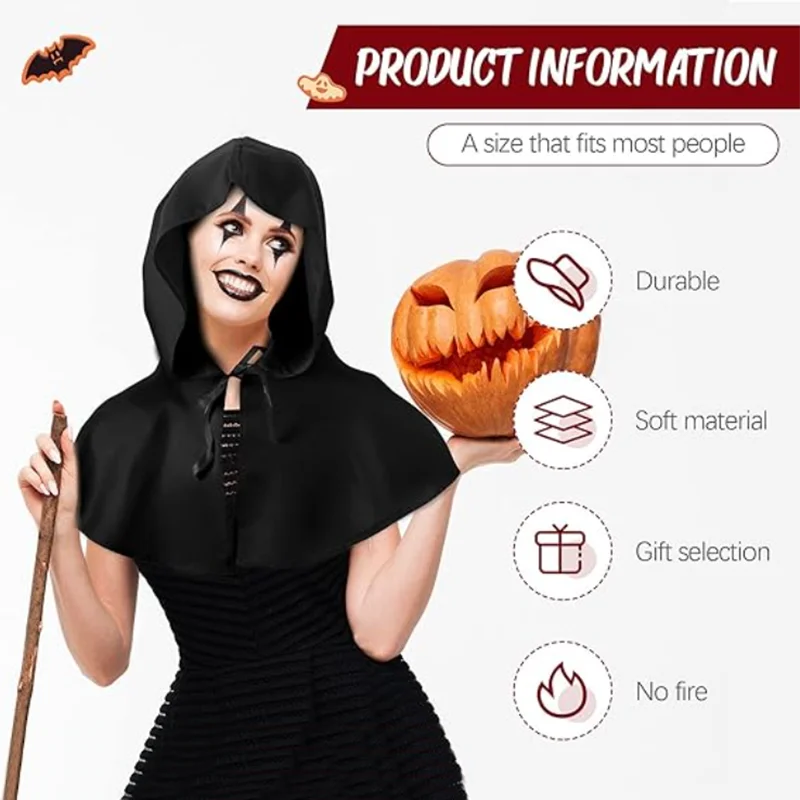 단색 할로윈 의상 검은색 사신 짧은 망토 케이프 소품 모자 포함 공연 의상 코스프레 소품