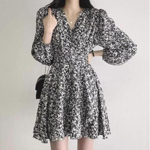 귀여운 여성 플라워 패턴 미니 원피스 URK-359