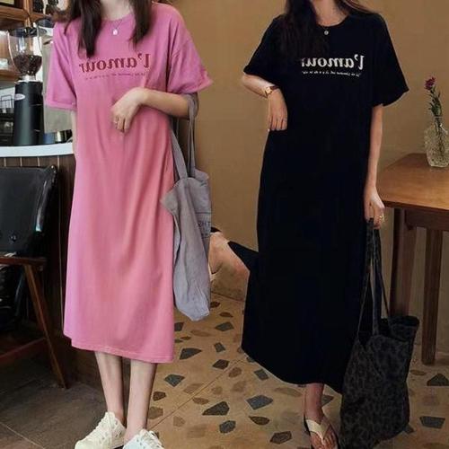 [오너클랜]인기상품 여성 귀여운 캐주얼 영문 레터링 롱 트임 반팔 원피스 [WC6EAAA_250918]