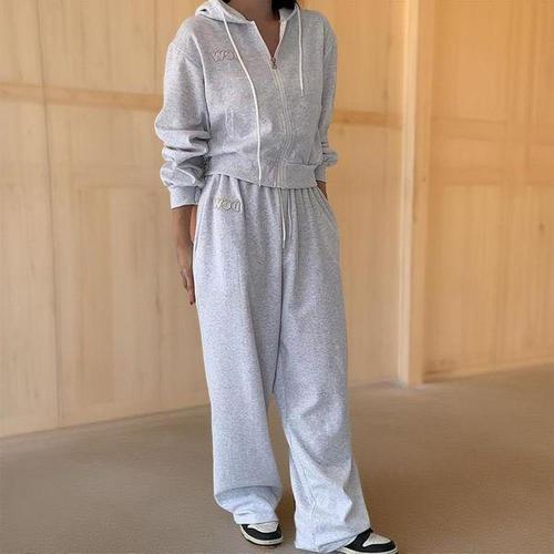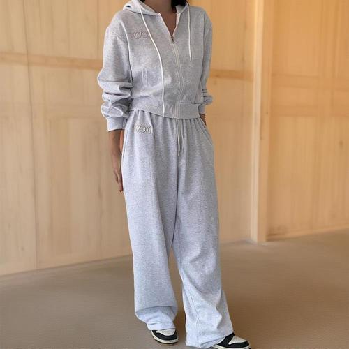 [신상오픈런]여성용 가을 크롭 후드 집업과 와이드 팬츠 트레이닝 세트