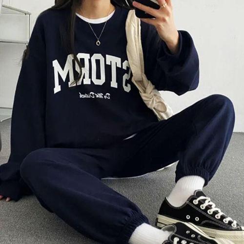 [유야]면 레터링 맨투맨 긴팔티 반바지 세트 츄리닝 트레이닝 -PST0448H- 빅사이즈 루즈핏 여성 가을