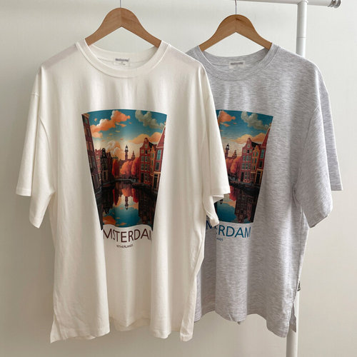나야홍 / 빅사이즈티 V208L509 풍경그래픽박시티셔츠 MO