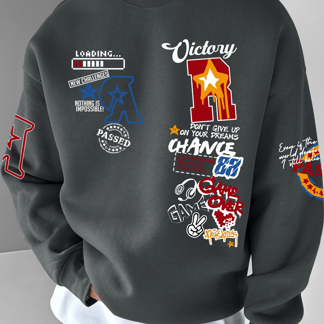 TEMU 남성용 승리 그래픽 스웨트셔츠 - 레드 & 레터링, 부드러운 풀오버, 헬스, 캐주얼 복장, 스포츠 이벤트 - 루즈핏 라운드넥 스웨터, 스트리트웨어 애호가, 남녀공용 의류, 통기성 소재, 스트리트 스타일, 편안한 원단, 스포티 디자인