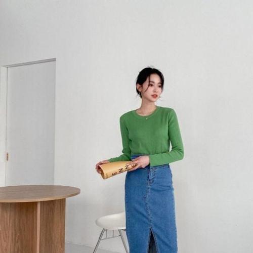 캐주얼 데일리 절개 디자인 러블리 데님 롱스커트