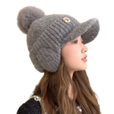 메종아루고 여성 이중보온 겨울 골프모자 방한 귀달이 방울 니트 털 모자 트루퍼햇 trapper hat, 그레이, 1개