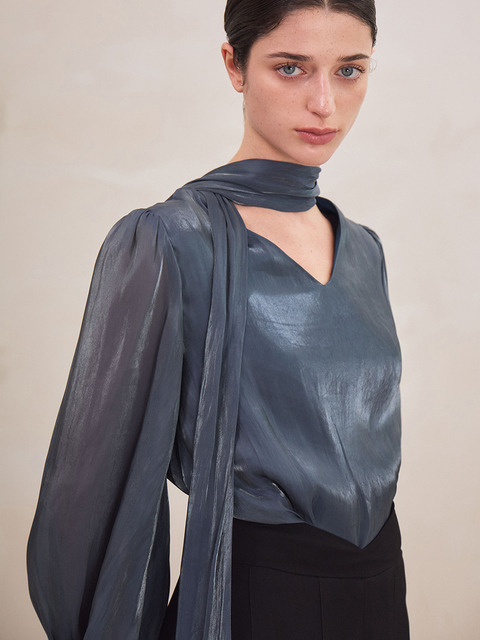 [그레이스유] 데이지 새틴 퍼프 블라우스 (딥 그린)