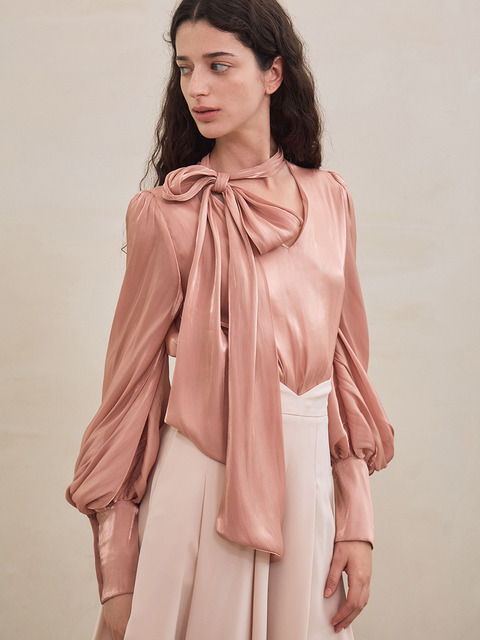 [그레이스유] 데이지 새틴 퍼프 블라우스 (로즈 핑크)