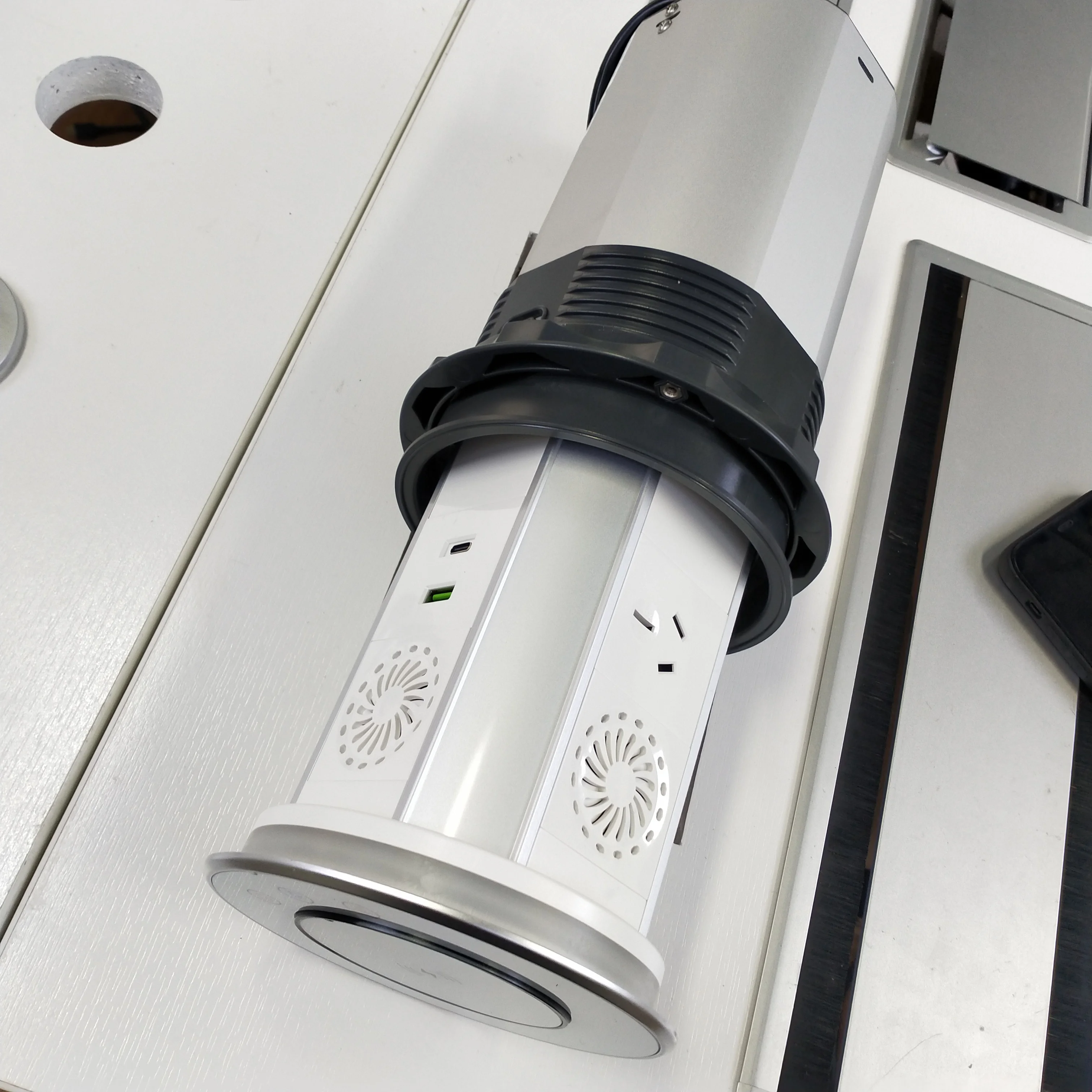 AU 표준 전원 플러그 IP65 주방 작업대 스마트 와이파이 리프팅 모터라이즈드 팝업 스피커 USB-C 타워 소켓 무선 충전기 포함