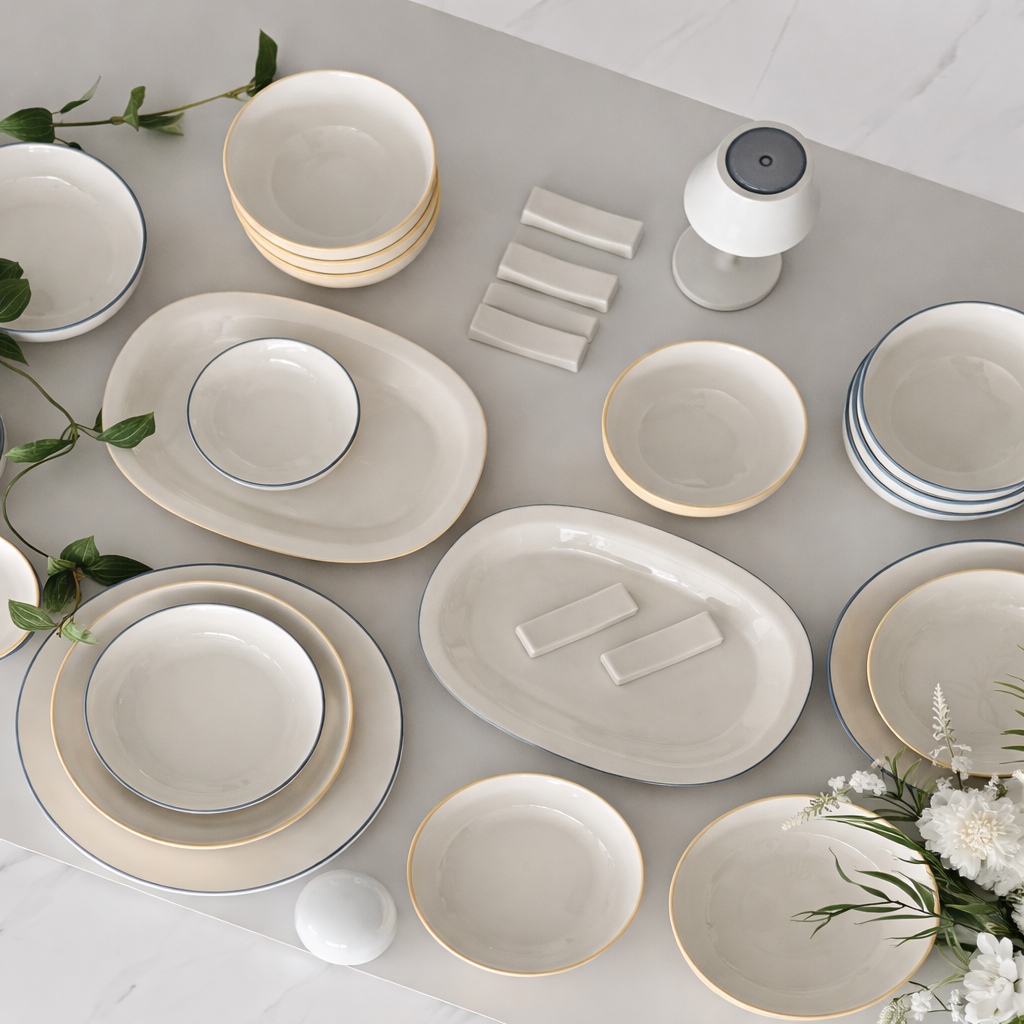 [Daily Joy] 2025 크림톤 도자기 식기세트 밥그릇 접시 수저 포함 고급 감성 식기 풀세트 집들이 선물용