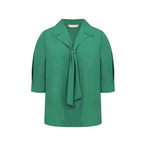 [에이치플러스몰]라운드 긴팔 넥 고급 셔츠 블라우스 그린 여자블라우스 봄블라우스