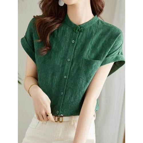 (스타일하우스)블라우스 셔츠 브라우스 그린 반팔 플라워 여성 꽃무늬