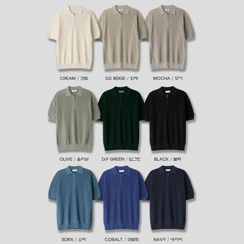 남자 여름 코헨 반집업 카라 반팔 니트티 SG-KNH-Q014-딥그린