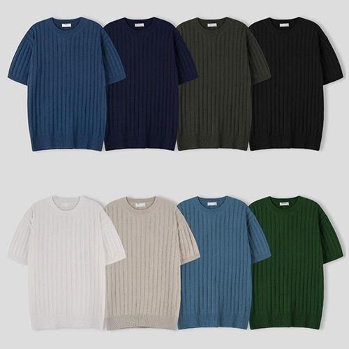 남자 여름 더블린 골지 라운드 반팔 니트티 SG-KNH-Q007-딥그린
