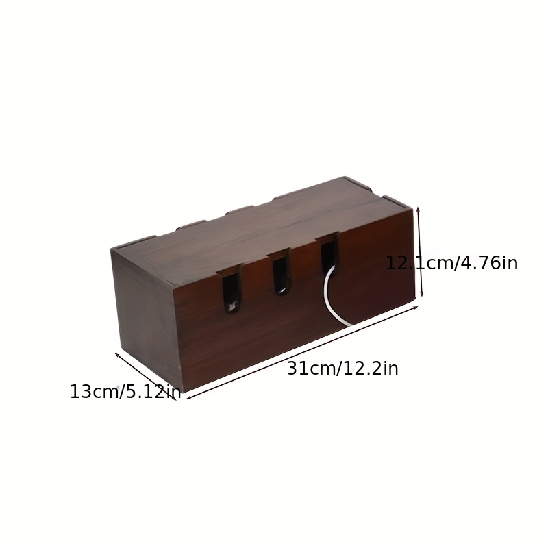 TEMU 전원 콘센트 & 데이터 포트가 있는 목재 케이블 관리 박스 - 사무실, 배선장, 서버룸용 고체 목재 패널 - 작업 공간 - 검정색 (전원 케이블, 네트워크 선 호환)