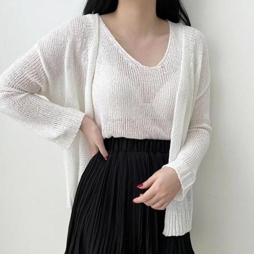[에이치플러스몰]그물패션 크롭 가디건 메쉬 시스루