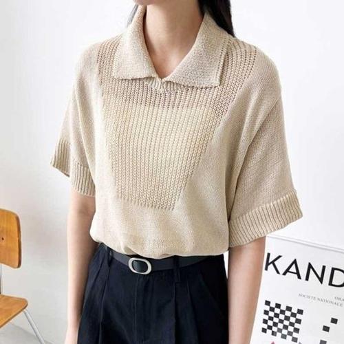 [엄지척]언발란스 시스루 그물짜임 카라 여름 반팔 니트웨어_19681193_667501