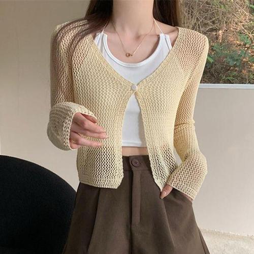 [엄지척]여성 여름 그물 니트 망사니트 시스루 긴팔 크롭니트_19678556_667501