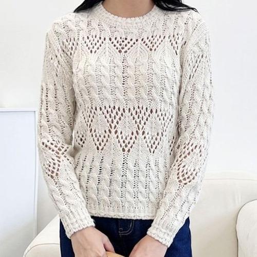 [엄지척]여자 아이보리 펀칭 그물 꽈배기 시스루 니트 티셔츠_19680339_667501