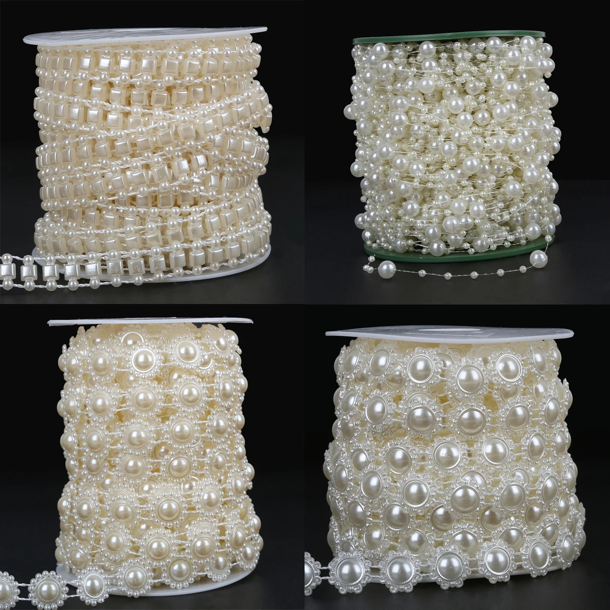 2-10 미터 3-10mm 낚시 라인 인공 모조 진주 라운드 비즈 체인 웨딩 신부 꽃다발 꽃 장식