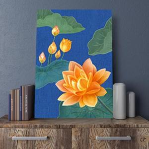 연꽃 행운 연꽃그림 캔버스액자 밤 주황색 그림드림