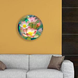 연꽃 연꽃그림 캔버스액자 밤 주황 그림드림 원형