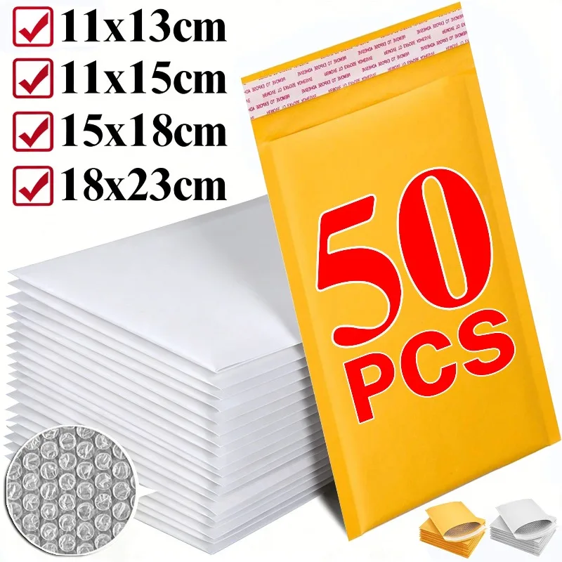 50PCS 크래프트 종이 버블 메일러 봉투 가방 버블 메일 링 가방 패딩 배송 봉투 비즈니스 용품 다양한 크기