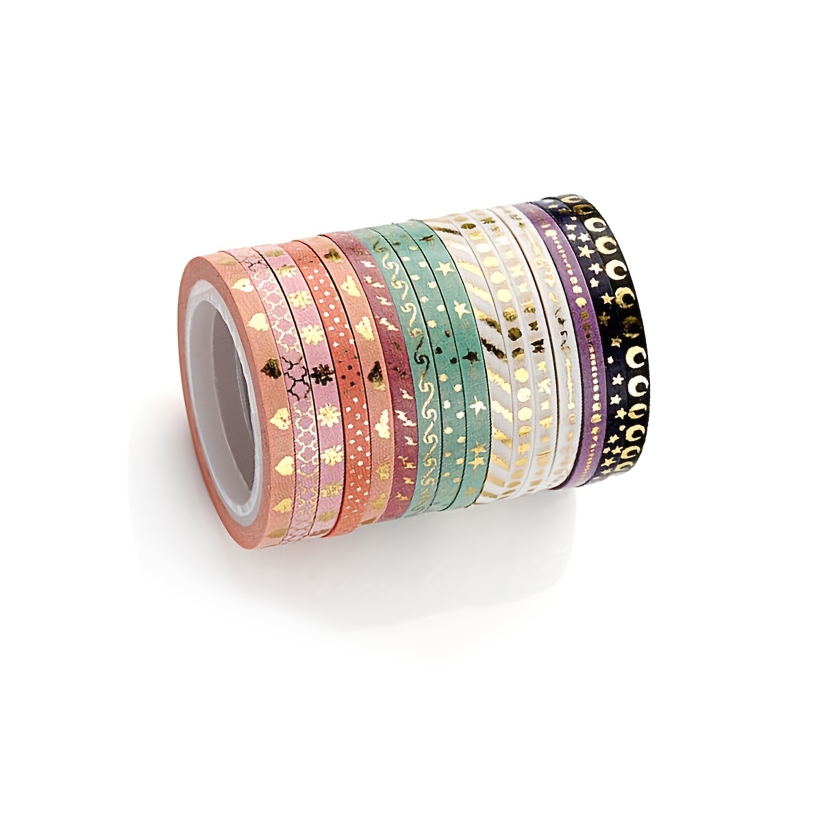 TEMU 세트 16롤 와시 테이프, 섬세한 금박 장식 마스킹 테이프, 스크랩북 및 생일 카드 장식용 3mm 폭 마스킹 테이프