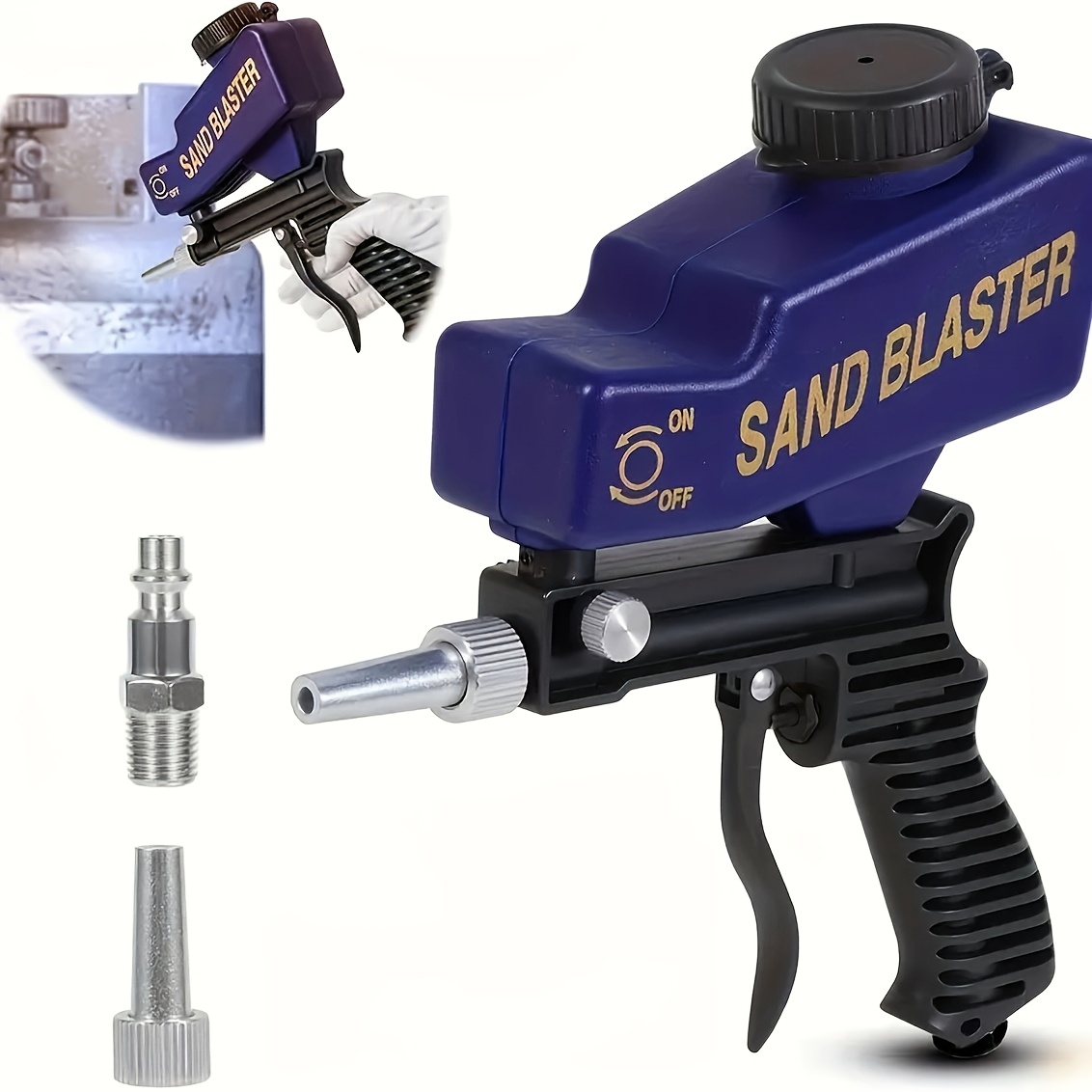 TEMU 인체공학적 핸들이 장착된 휴대용 샌드 블래스터 건 | 600cc 용량, 페인트 및 녹 제거에 적합, 나무, 금속, 자동차, 프로젝트에 적합, 소다 파우더, 샌드, 호두껍질 & 알루미늄 산화물 포함, 조절 가능한 중력 급여 소형 에어 샌드 블래스터