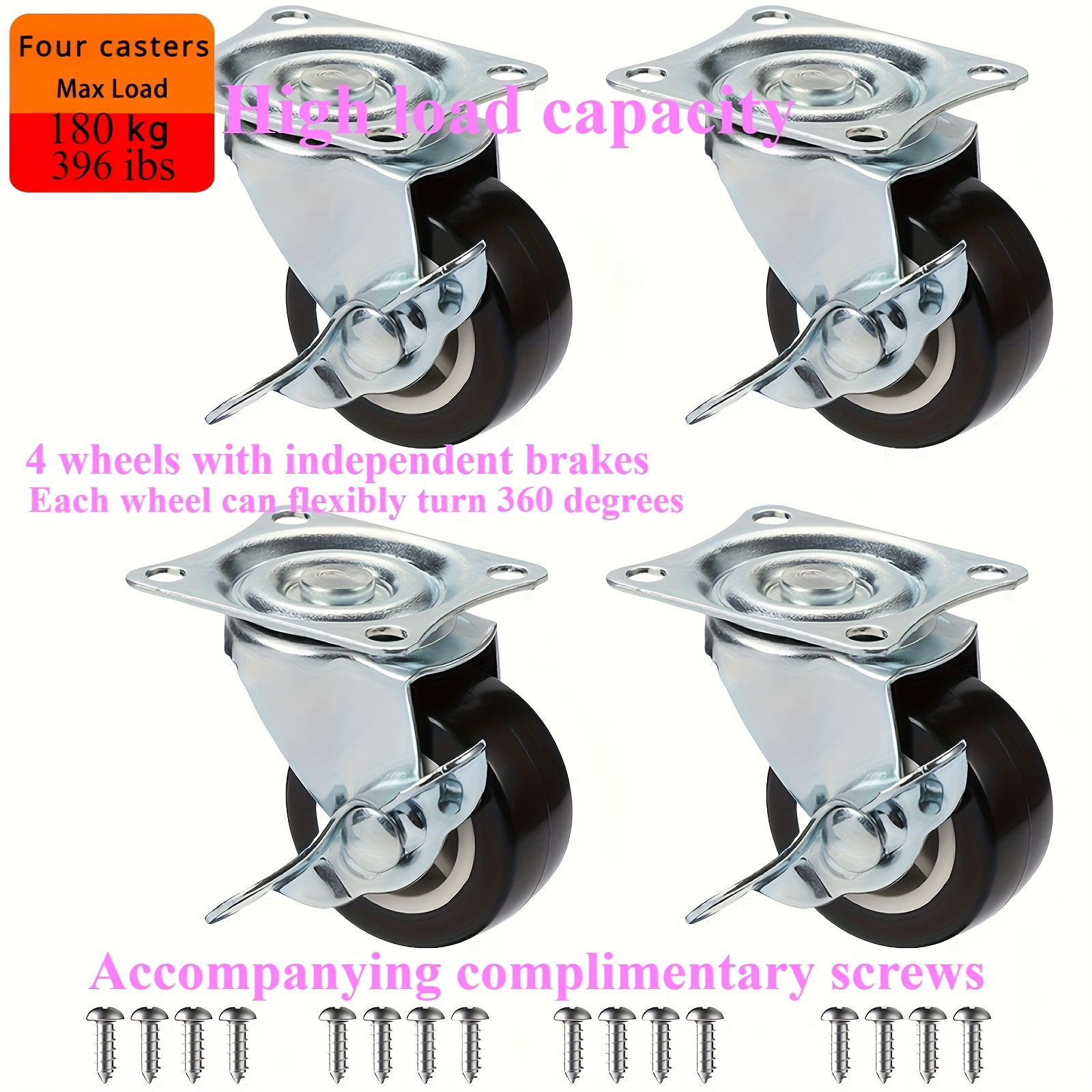 TEMU 잠금 장치와 브레이크가 있는 4개의 합성 고무 회전 캐스터 세트 - 컴퓨터 캐비닛, 사무용 가구, 작업대, 보관 용기 및 식물 스탠드용으로 설계된 내구성 있는 바퀴